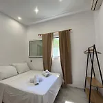 El apartamento ofrece vistas al jardín y comodidades tan modernas como climatizador.